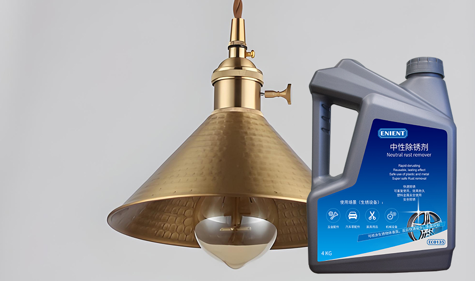 在這個(gè)需求背景下,ENIENT®EC0135中性除銹劑應(yīng)運(yùn)而生。作為一款專為黃銅表面設(shè)計(jì)的高效除銹劑,它以其卓越的性能和簡(jiǎn)單的使用方式迅速贏得了市場(chǎng)的青睞。不同于傳統(tǒng)的強(qiáng)酸性除銹劑,這款除銹劑采用中性配方,不會(huì)對(duì)黃銅表面產(chǎn)生二次傷害。更為關(guān)鍵的是,僅需2分鐘,您的黃銅吊燈便能恢復(fù)銅本色,煥發(fā)出它應(yīng)有的光澤。