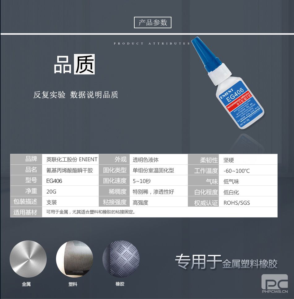 ENIENT EG406快干膠塑料橡膠粘接金屬粘接5~10秒固化無白化透明20G